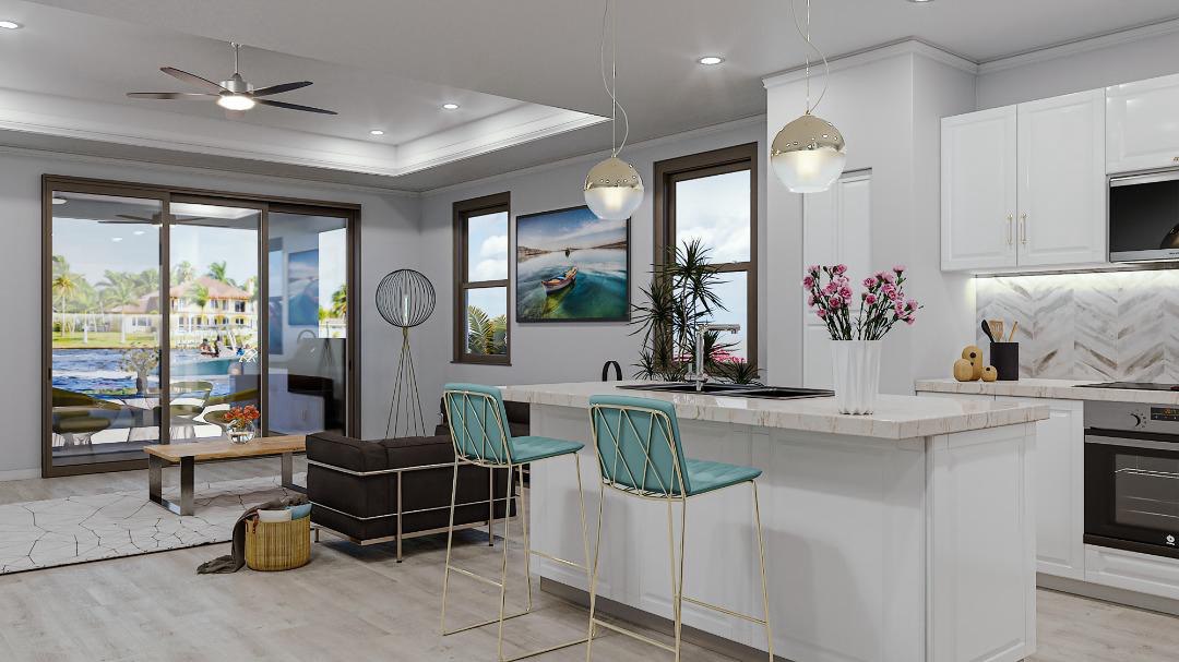WOW ! Here's the Waterfront Gulf Access Home that you've been waiting for. - Located in the Caloosahatchee Residential Community. A desirable location which is coveted for both its direct River Access laced with canals and its proximity to Town Convenience. These Gulf Access, Waterfront Villas have a lot of benefits to offer. Fish from the Captain’s walk or opt for an optional dock/boating package for your boat. Floor Plan features 3 Bedrooms + 2 Full Bathrooms + Great Room and a cozy Lanai with Summer Kitchen. Two car garages, impact resistance doors and windows, nine feet tall doors, wood cabinetry and tile throughout. Stainless steel appliances. Upgraded quartz countertops. Kitchen Island. Upgraded lighting package. Upgraded brush Nickel Moen faucets. Automatic irrigation system. Accented brick paved driveway, walkway and entry. On city water and sewer. Do not Wait on these units, only 4 units available. Delivery summer 2024